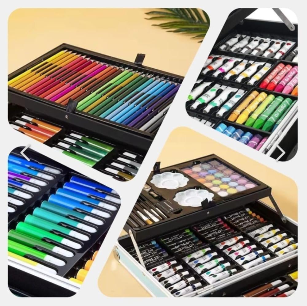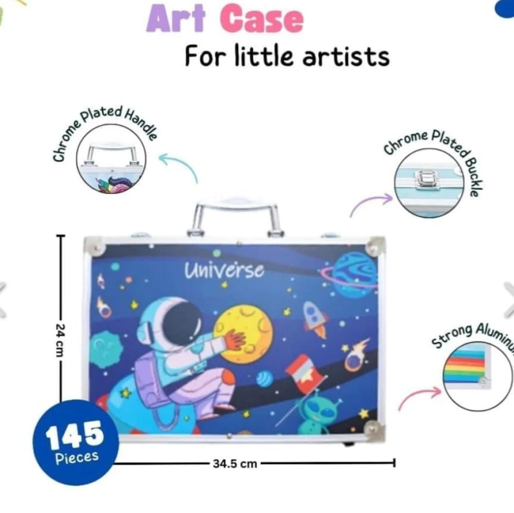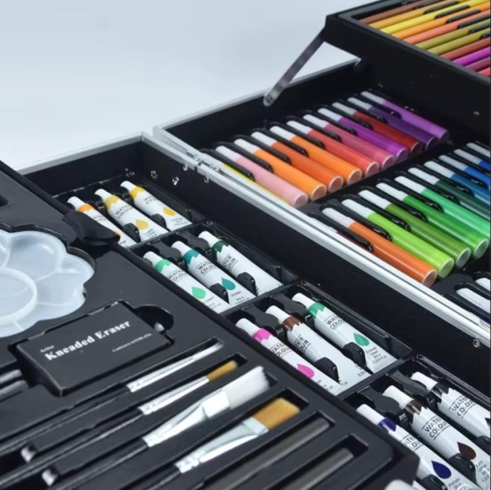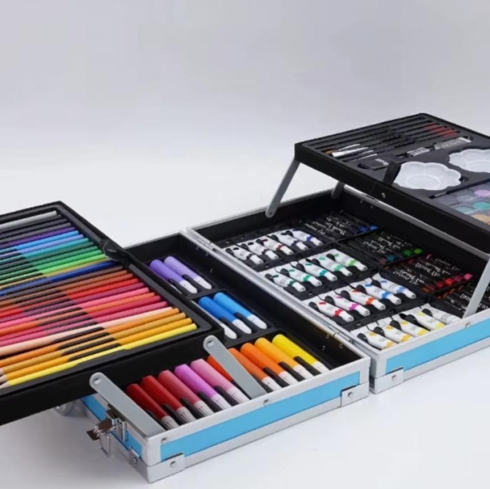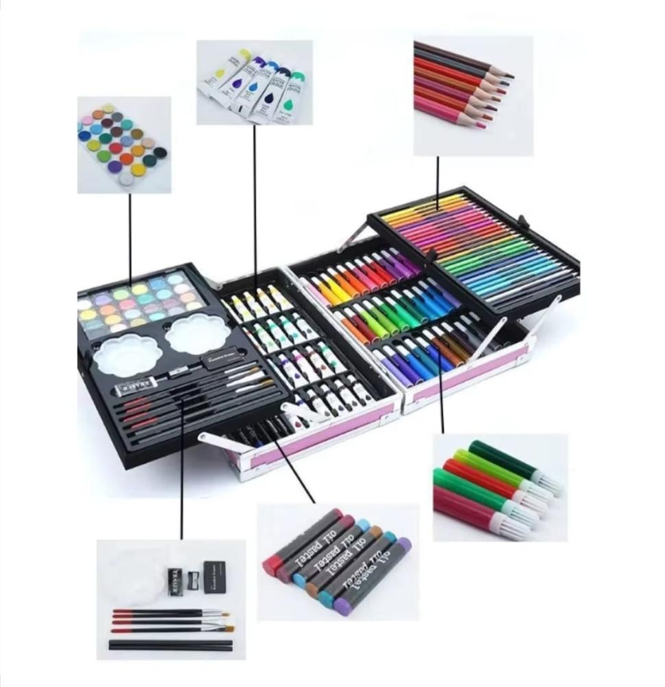 مجموعة فنية للأطفال مكونة 145 قطعة مع علبة محمولة من الألومنيوم لنشاطات الرسم أقلام رصاص ملونة لوازم للتلوين والطلاء هدية للبنين والبنات